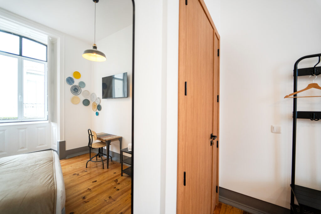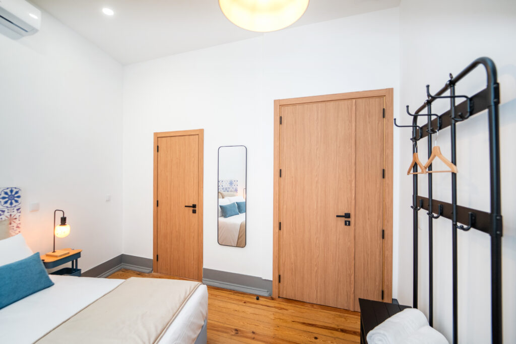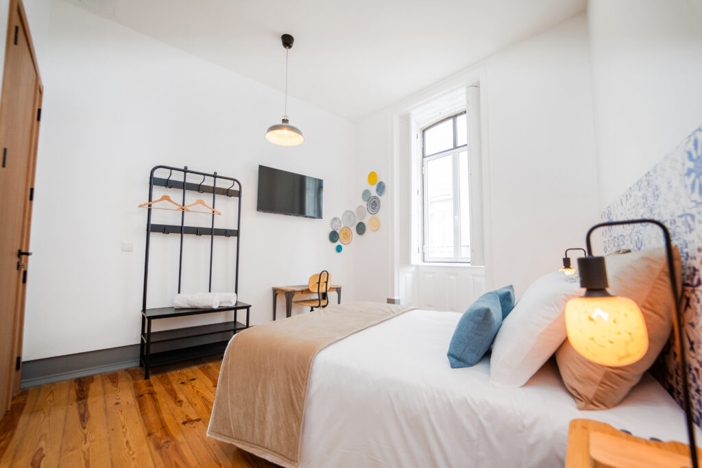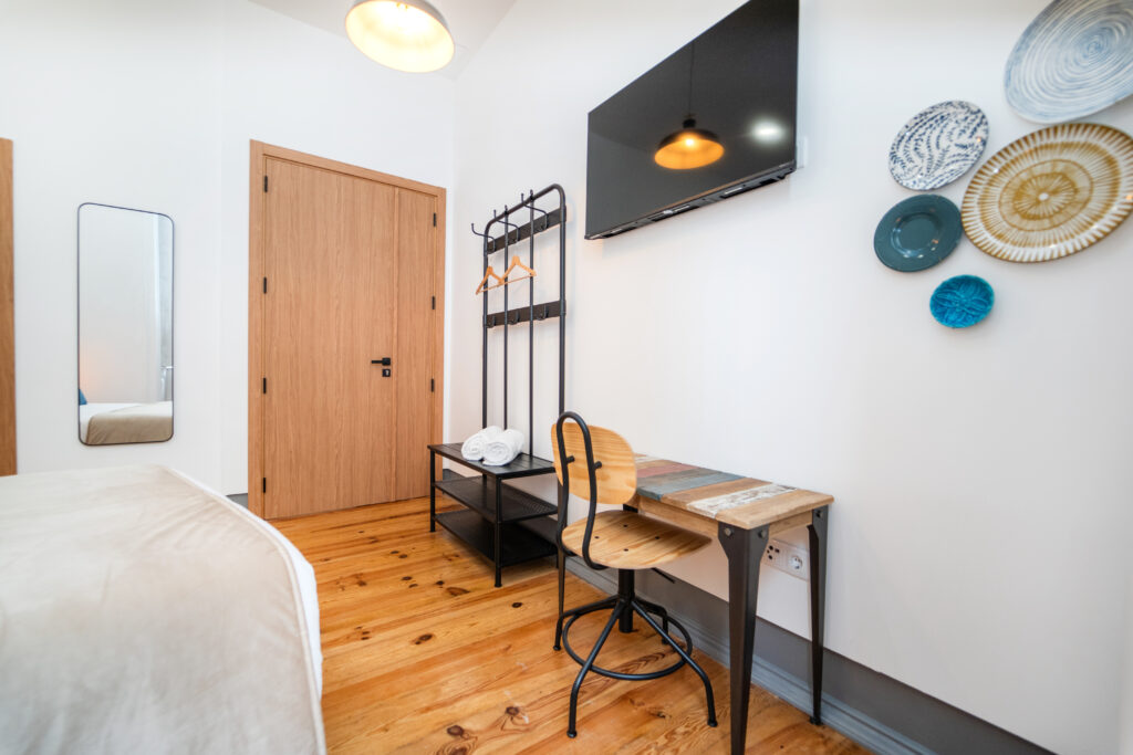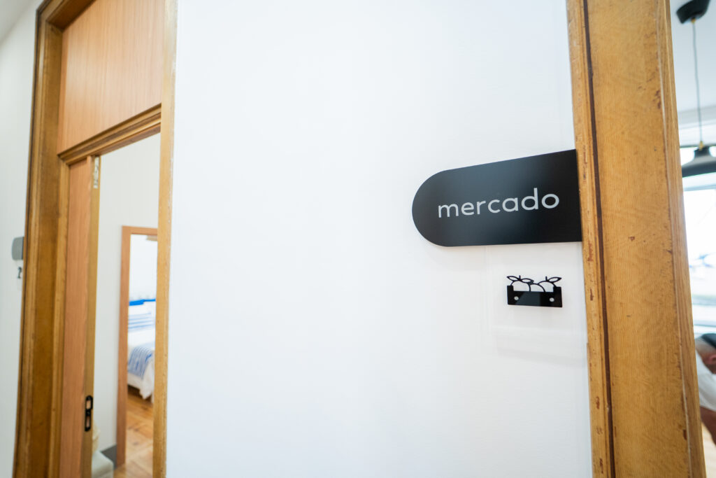 O “Mercado” é um espaço que transporta os hóspedes para o coração vibrante da Figueira da Foz, onde, no Mercado Municipal, as cores, cheiros e sons de outros tempos se entrelaçam em um espetáculo de vida. A cabeceira do quarto, que evoca os azulejos antigos dos mercados, é um tributo a esse local icônico, onde se ouviam as conversas animadas entre vendedores e clientes, e onde cada canto parecia guardar uma história única.
