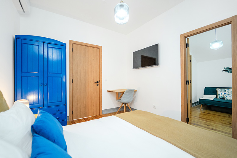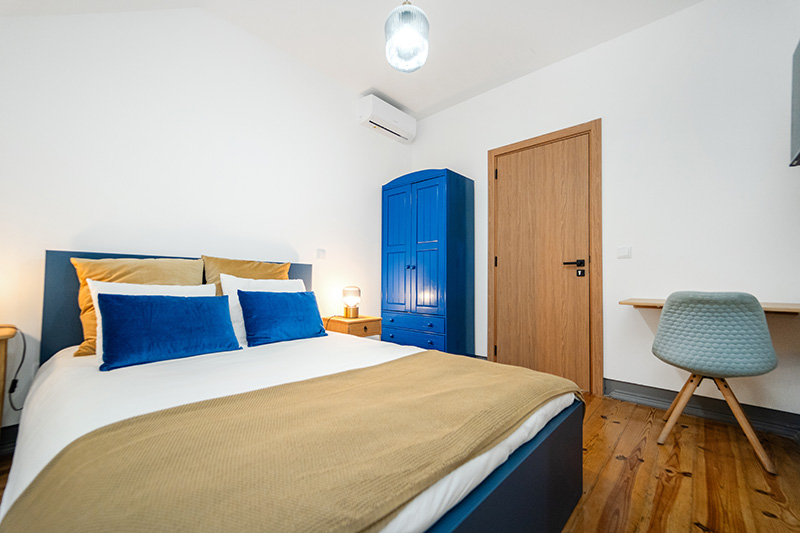 O “Oceano” é uma ode à imensidão do Atlântico, um espaço onde a vastidão do mar se encontra com o conforto acolhedor do seu lar. Decorado em várias tonalidades de azul, que vão do profundo ao suave, este quarto transmite uma sensação de serenidade e liberdade.