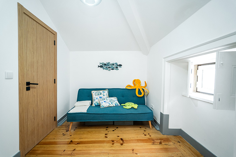 Ao entrar neste ambiente, sentirá a envolvência que só um teto de águas furtadas pode proporcionar — um refúgio acolhedor, como se estivesse a bordo de um navio à deriva nas águas calmas do oceano.