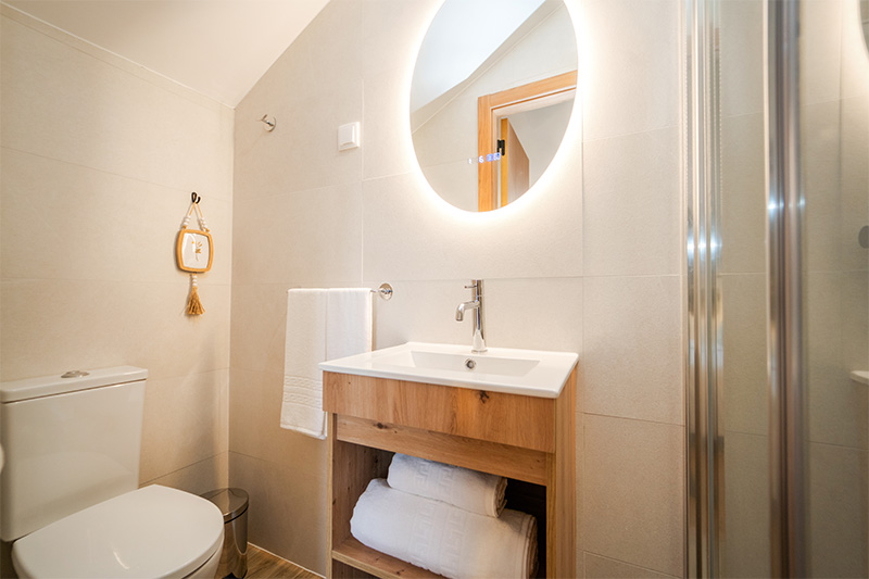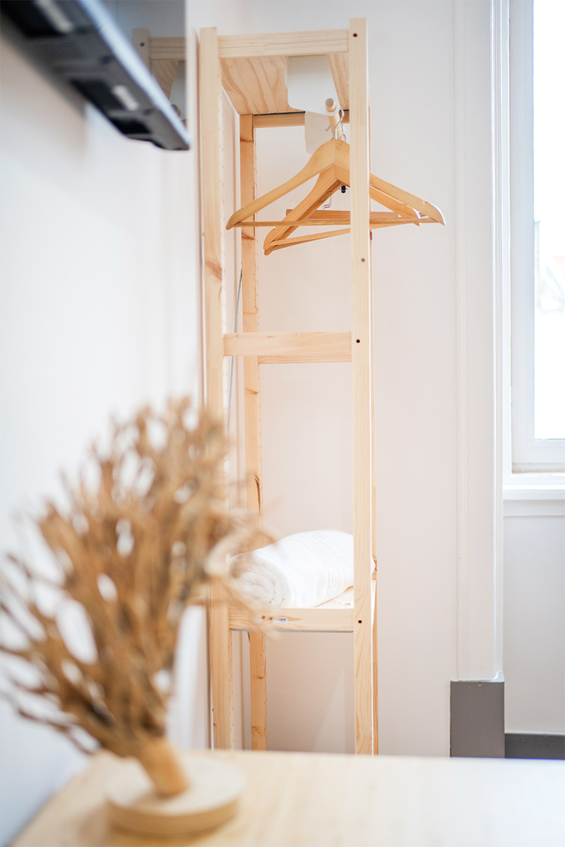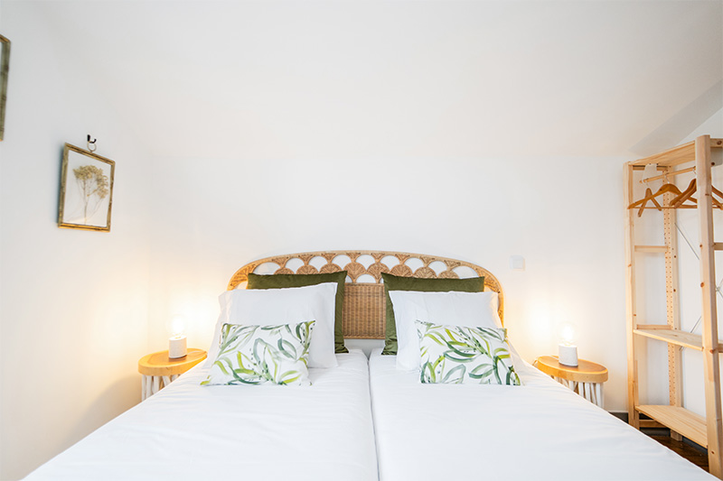 Com camas individuais dispostas de forma acolhedora, este espaço foi está especialmente preparado para colegas ou amigos que viajam juntos. As cores suaves e a luz que penetra pelas janelas criam uma atmosfera de paz, como se a natureza da serra penetrasse em cada canto do quarto.