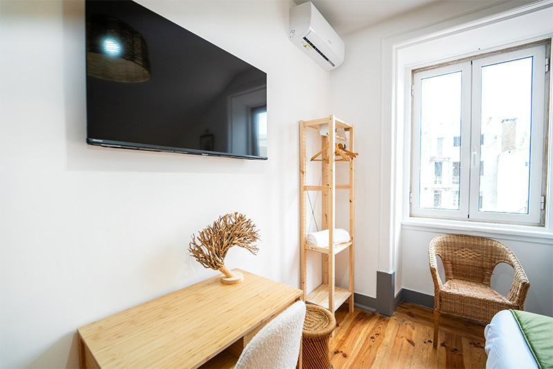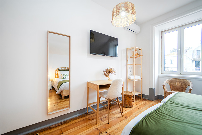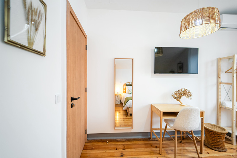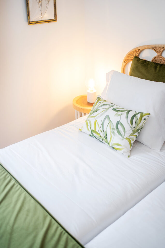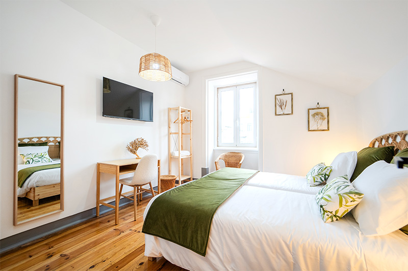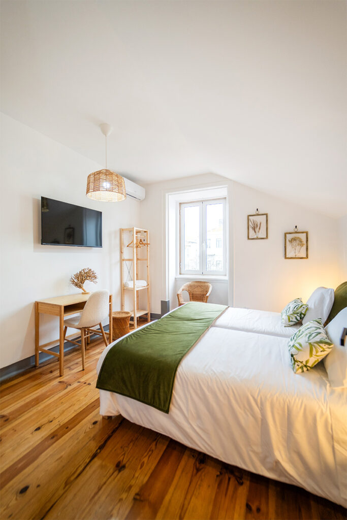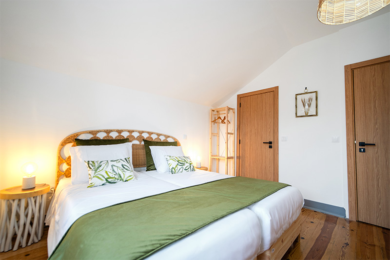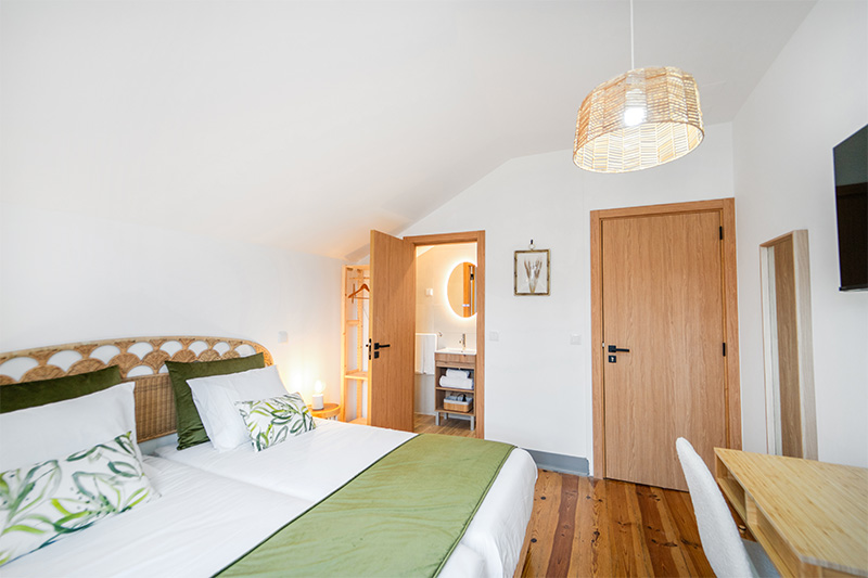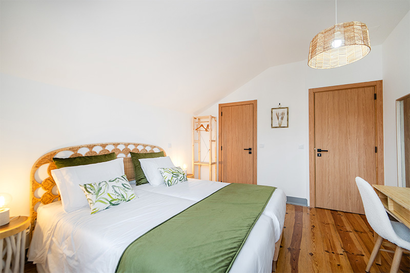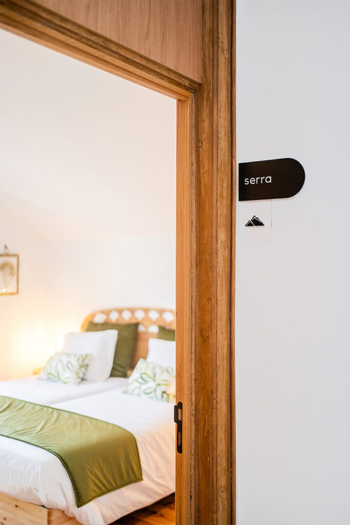 Inspirado pela leveza e vitalidade da Serra da Boa Viagem, o quarto “Serra” é frequentemente considerado o mais belo de todos. Os seus tons de verdes suaves, beges e brancos evocam a frescura e a pureza dos ares da serra, transportando os hóspedes para o coração da natureza. Cada detalhe, cuidadosamente pensado, convida à serenidade e ao equilíbrio, oferecendo uma pausa restauradora para a alma.